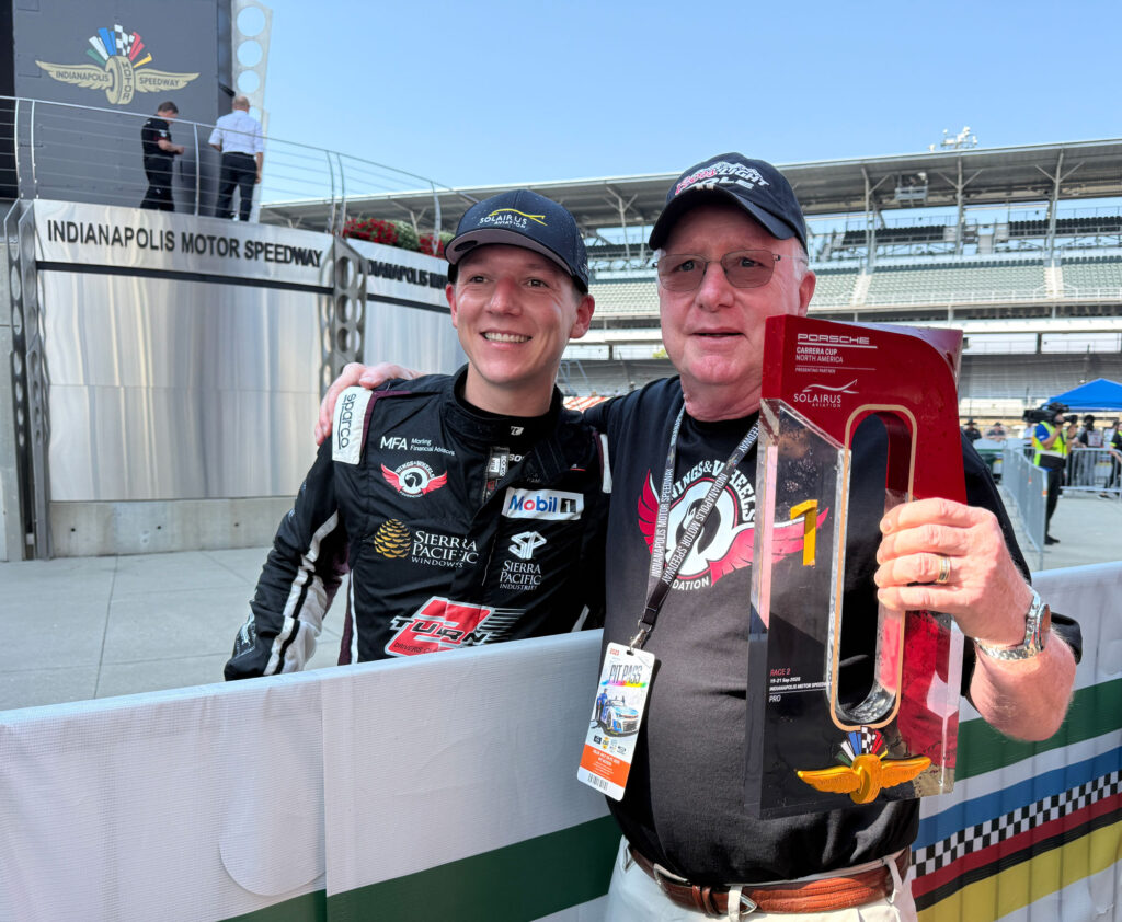 TeamWWF driver Aaron Jeansonne broke through with his first career win in the Porsche Carrera Cup North America on Saturday at the Indianapolis Motor Speedway.
