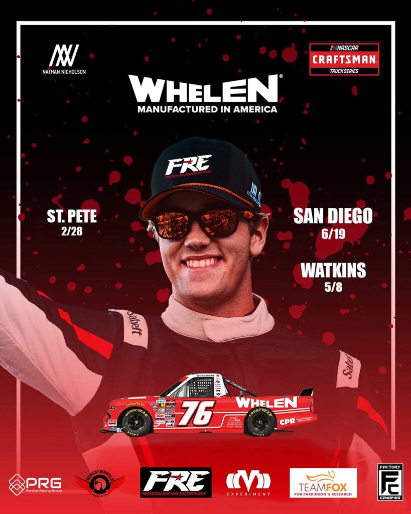 TeamWWF Driver Ambassador Nathan Nicholson had some exciting news to share on Wednesday afternoon. Nicholson, 19, who is from Bloomington, Ind., announced that he will make his NASCAR debut in 2026 with Whelen Engineering and Freedom Racing Enterprises. Nicholson will compete in select road course events (Craftsman Truck Series) in the No. 76 car for Freedom Racing Enterprises.