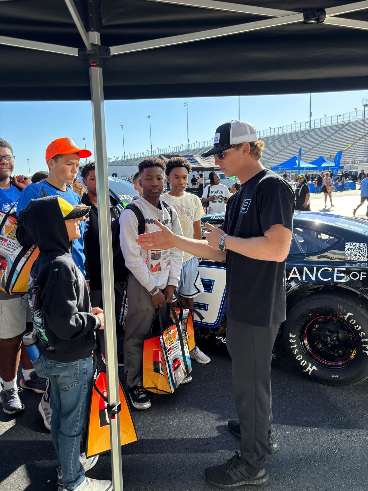 Giving back to the next generation is something I take great pride in. I love working with kids through Charlotte Motor Speedway’s STEAM programs, teaching them about racing and inspiring them to follow their dreams. I enjoy connecting with fans, often alongside my dog Cota, who’s become a fan favorite at the track.